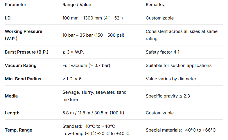 Tube: Made from high-quality synthetic rubber (NR, SBR, BR, etc.), providing outstanding abrasion resistance and seawater corrosion resistance to withstand long-term erosion from high-concentration solid particle media.